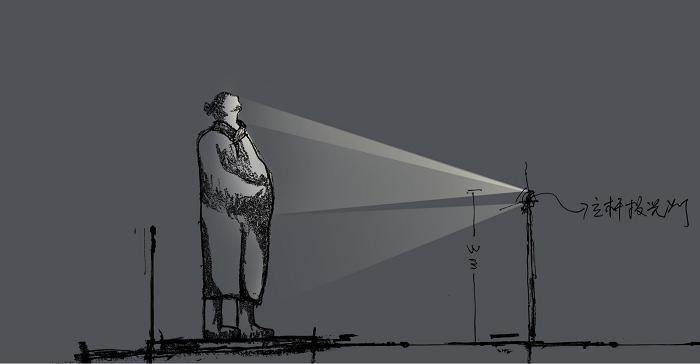 《蒼生》選取五種顏色的燈光,象征金、木、水、火、土,染亮雕塑陣列的不同區(qū)域。五行相生相克,各自獨(dú)立,又相互依存,與雕塑作品主題相呼應(yīng)。不同的燈光顏色相互融合,又混合出新的顏色,整個(gè)蒼生世界變得絢麗多彩。