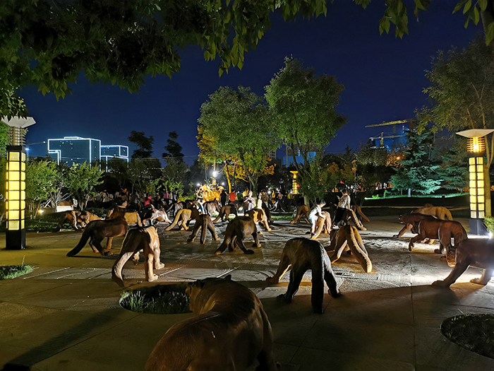《高山流水》、《狼來(lái)了》、《蒼生》等七組雕塑代表作品給大家?guī)?lái)空前的視覺(jué)盛宴與心靈震撼。深刻得表達(dá)了生態(tài)與人互相影響,互相升華的合一存在。